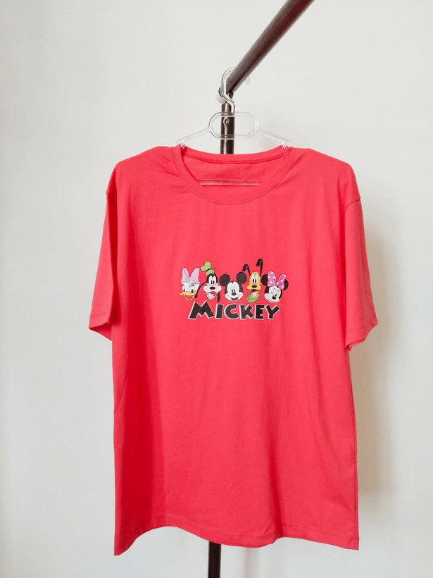 تیشرت زنانه نخ پنبه قواره آزاد آستین کوتاه فری سایز طرح میکی فمیلی