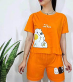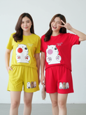 ست تیشرت و شورتک زنانه نخ پنبه آستین کوتاه فری سایز طرح خرس کله فندقی