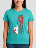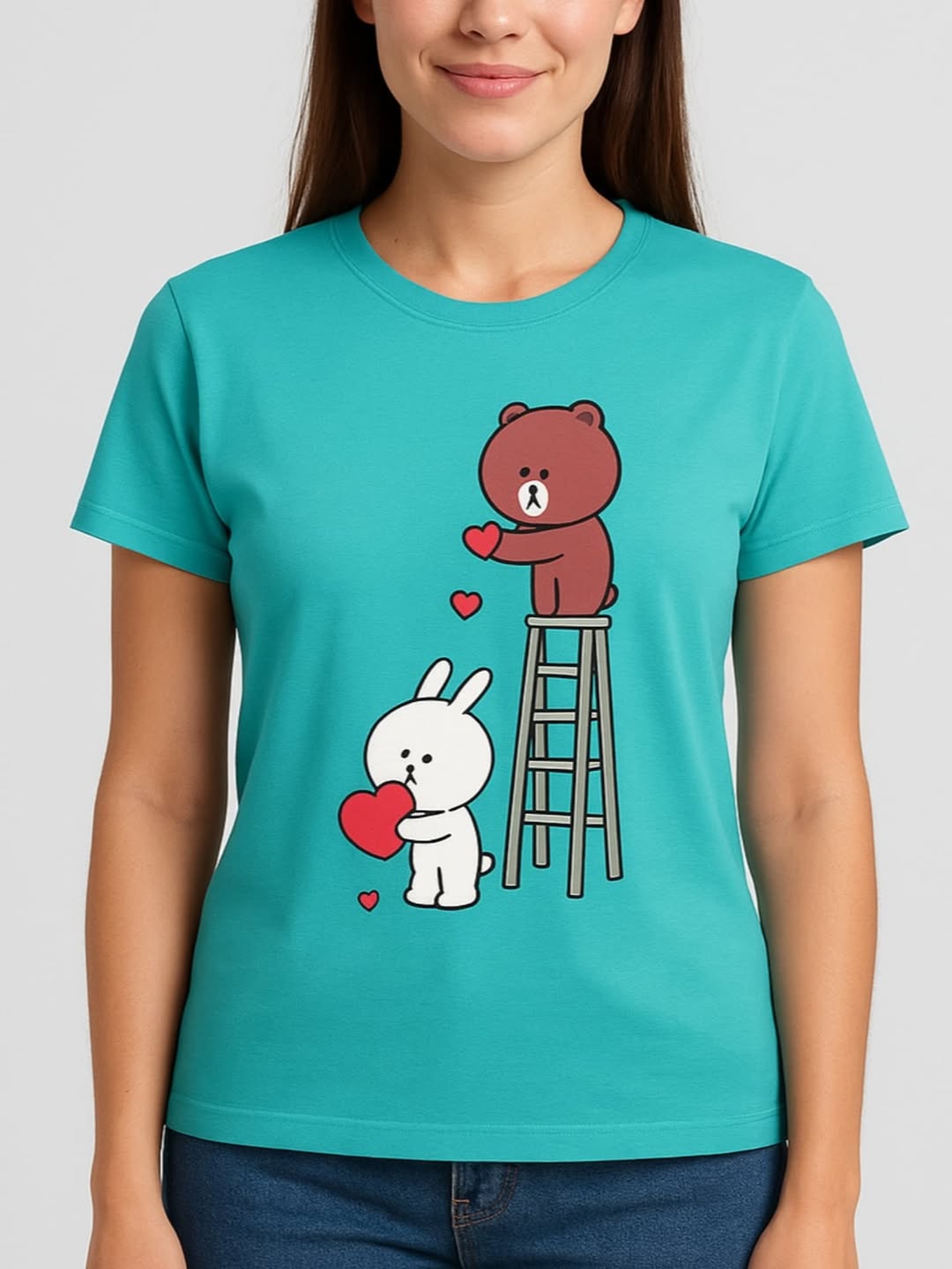 چاپ خرگوش و خرس عاشق روی تیشرت، یه حس دلنشین و دوستداشتنی به استایلت میده و جنس نرم نخ پنبهایش باعث میشه روزای گرم تابستون کاملاً راحت باشی