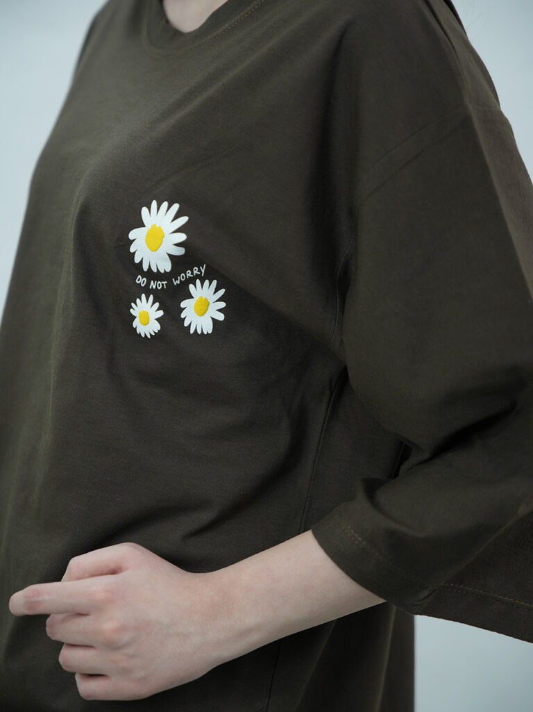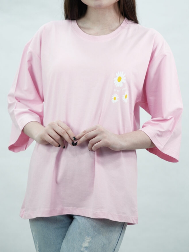 تیشرت باکسی زنانه طرح بابونه