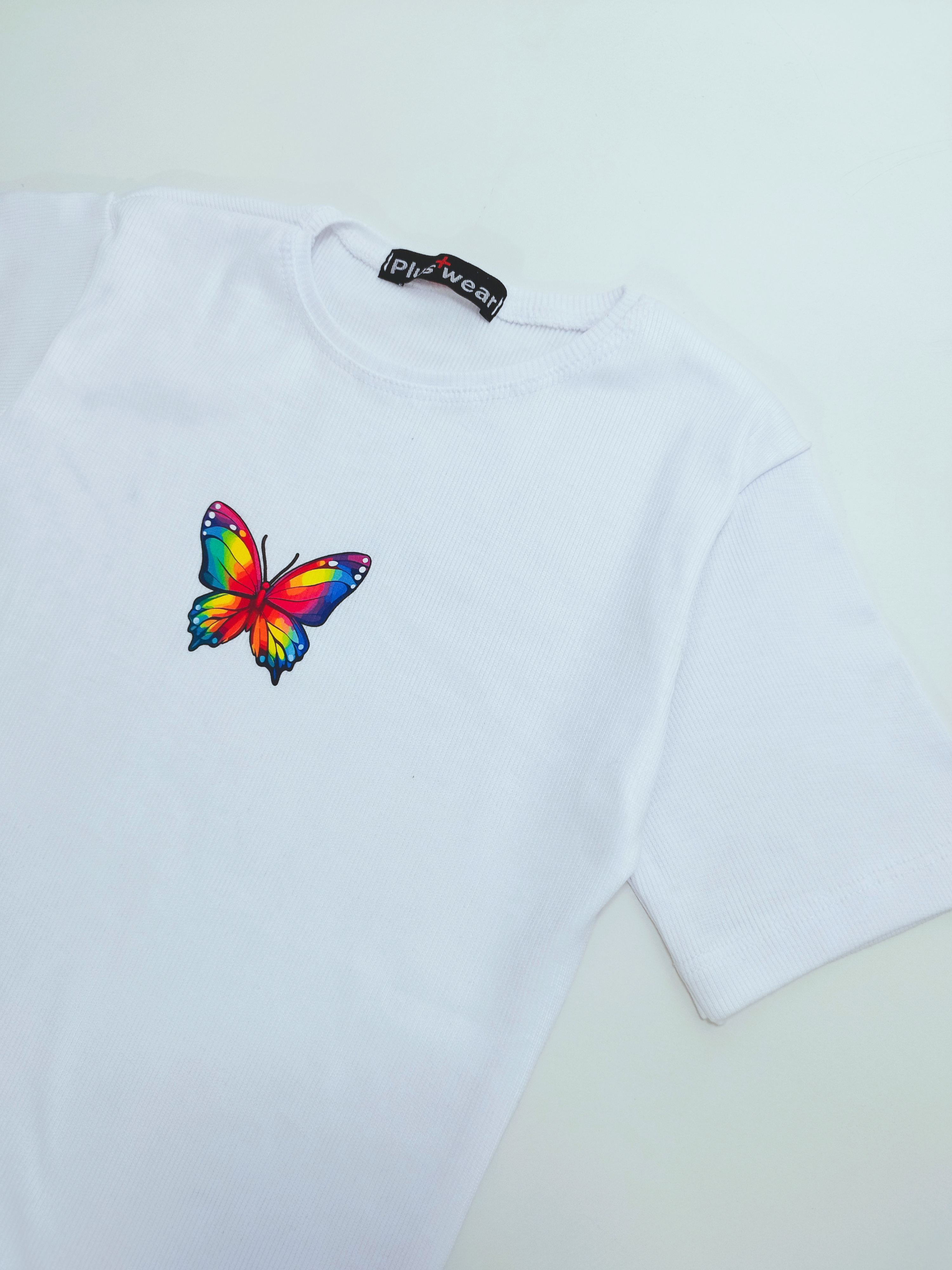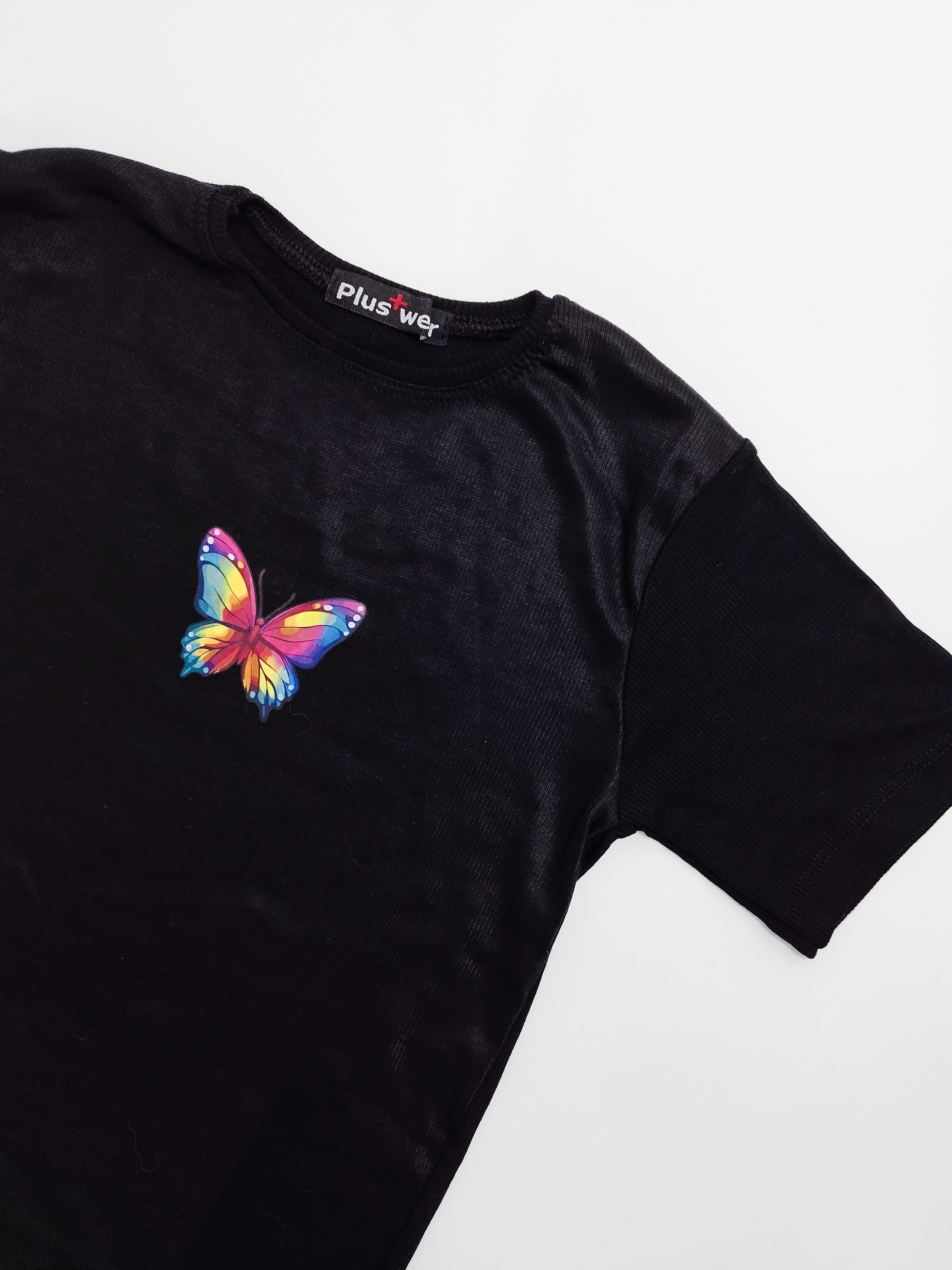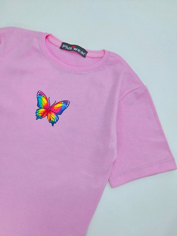 تیشرت زنانه کبریتی پنبه آستین کوتاه فری سایز طرح پروانه