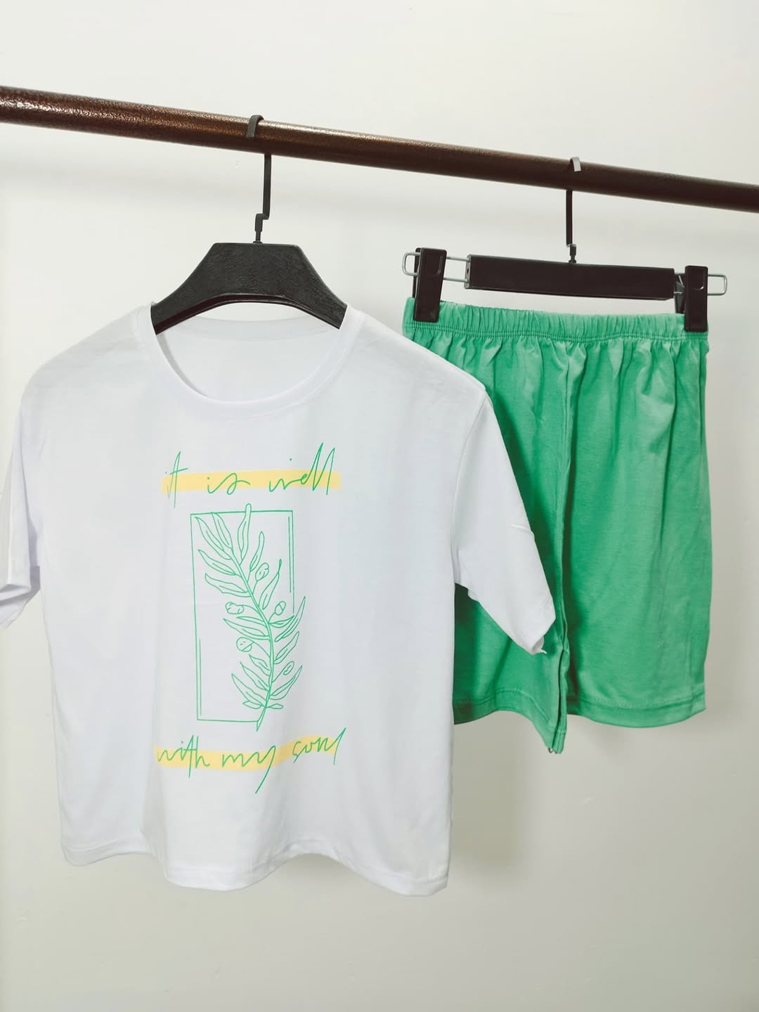 ست تیشرت و شورتک مدل برگ دقیقاً همون چیزیه که برای روزای گرم لازم داری